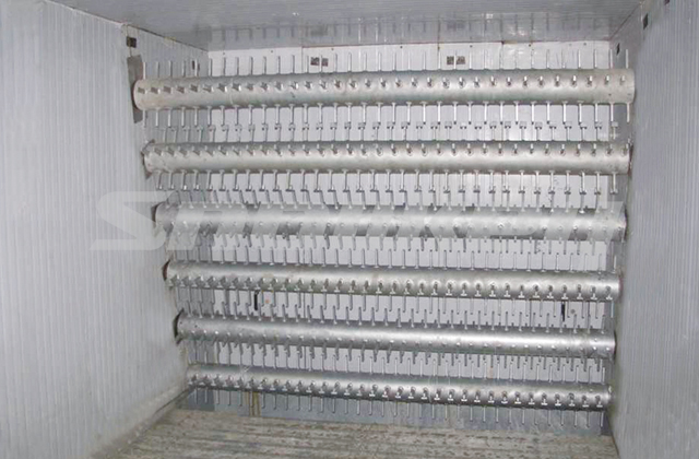 履带式自动储冰库的设计采用“先进先出”的原则,即先制出来的冰先送入库,用冰时先入库的冰先送出库,从而避免了冰库长期使用后底部出现结冰的现象。
